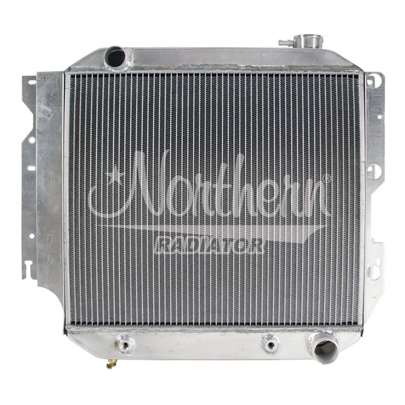 Northern high performance aluminum radiators are more durable and last longer than conventional plastic / copper combination radiators. Aluminum is more resistant to pressure and every day damage that may occur. These aluminum radiator cores and headers (end tanks) are brazed as one solid piece allowing for uniform heat transfer. Norther aluminum radiators have wider core tubes for more contact with cooling fins which provide better heat transfer. The aluminum cores are thinner allowing for better air flow over the fins which in turn conducts heat more efficiently from your Wranglers cooling system.