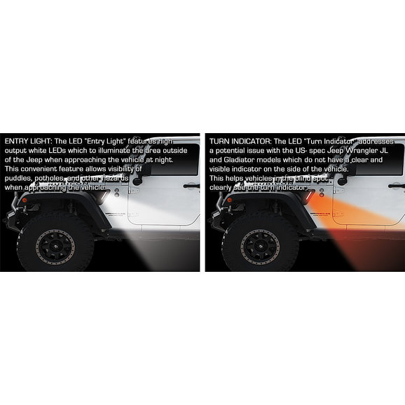 Added Convenience: With a simple push of your key fob unlock button you have a brightly illuminated area along the ground next to your Jeep.