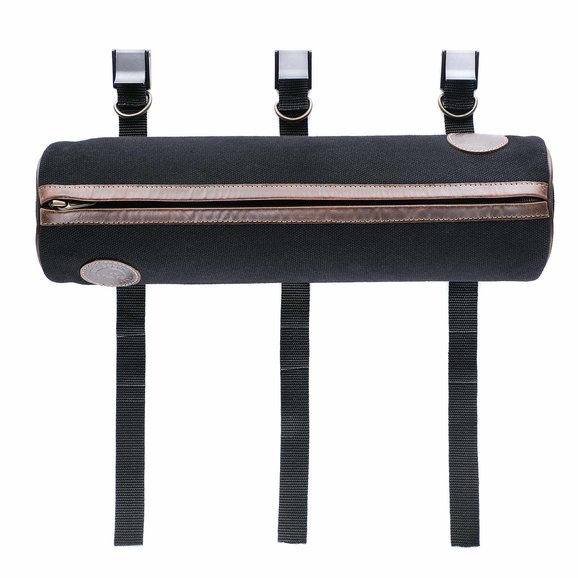 Durable Storage: The Roll Bar Bag is made from heavy duty canvas material that incorporates leather accents that will provide a useful and attractive storage option that attaches to the Jeep's roll cage.