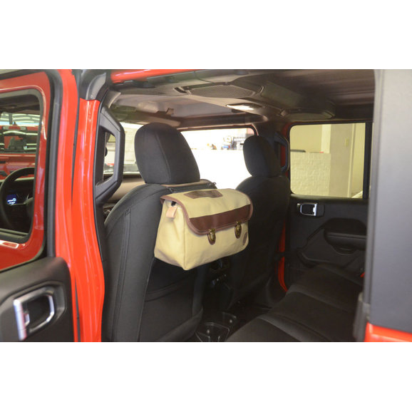 Sometimes you just need some extra storage space inside your Jeep. And sometimes you need to easily take those items with you when you are on the move. Well, the Zip & Go Storage Bag is every bit as portable as it is beautiful and functional inside your Wrangler. Constructed with premium quality leather and water/UV-resistant canvas, this bag can be installed on your seat’s headrest in seconds thanks to a provided leather zip panel. That way, when you need to take it with you, just unzip and go. The bag’s considerable 12”x 15” storage area provides room for whatever you may need to carry. The Grab & Go Storage bag is also designed to fit exclusively for the Gladiator JT GSS Storage panel (available separately). Choose from tan or black.