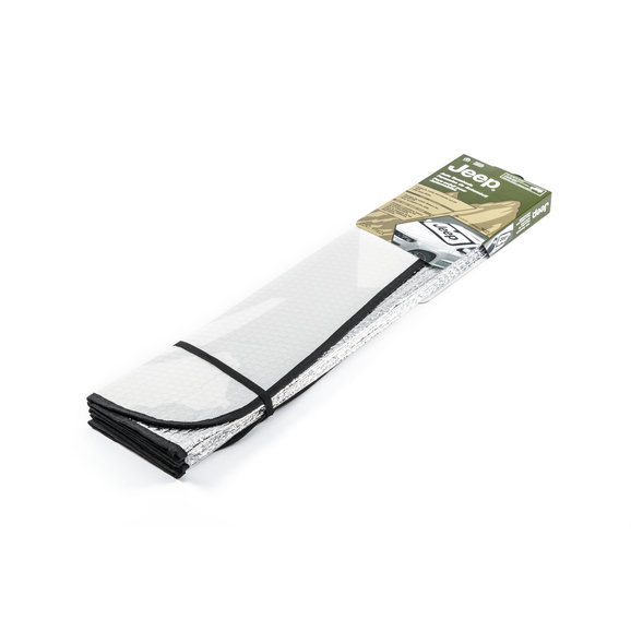 You never have to worry about finding shade again when you park your Jeep with the Sun Shade from Plasticolor. This shade folds up nicely so you can store it anywhere in your Jeep, then just unfold it & place it in your window to block out the sun keeping your vehicle nice and cool when you return to it. This is a universal product designed for use on larger windshield Jeeps as the panel measures 58" x 27.5" when open. We recommend measuring your windshield dimensions prior to ordering.