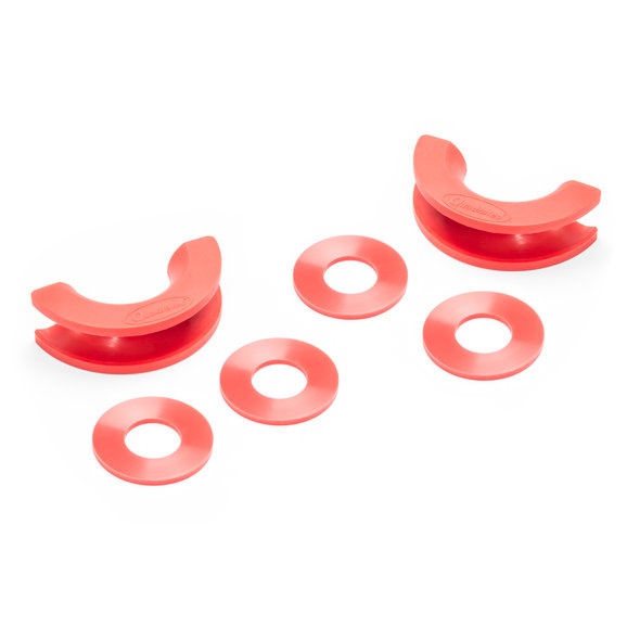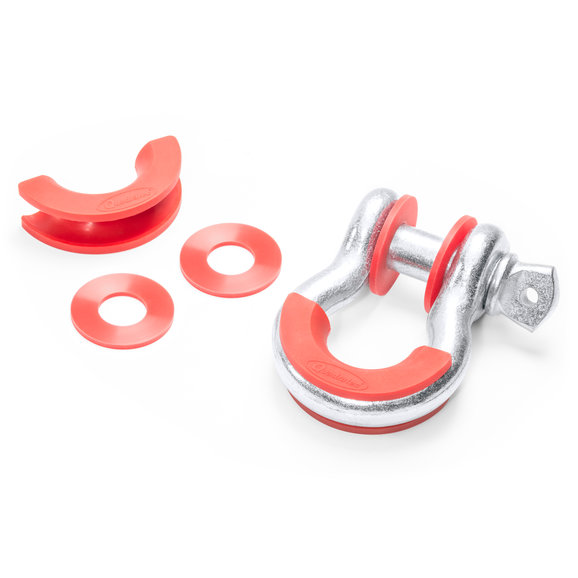 The Quadratec molded polyurethane D-ring isolators snap into the inner perimeter of standard shackles providing cushioned protection for synthetic recovery lines. Isolator kits include two isolators that eliminate the metal to metal contact of the bumper and D-ring. The included 4 urethane washers isolate the shackle pin from the clevis tab to eliminate annoying rattles. Ther D-Ring isolator kits work with all 3/4” D-Rings with 7/8” diameter pins and are available in your choice of red or black polyurethane.