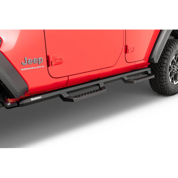 In addition to their practical benefits, the Quadratec Drop Steps also enhance the overall safety and protection of your Jeep. The non-slip surface ensures secure footing, even in wet or muddy conditions, reducing the risk of slips and falls. These side steps also provide added protection to your Jeep's rocker panels from rocks and debris encountered during off-road excursions. Installation is a breeze with the bolt-on design, utilizing factory mounting points for a secure and hassle-free fit. With these side steps, you can enjoy the perfect blend of style, functionality, and protection, making your Jeep Wrangler JL Unlimited ready for any adventure.