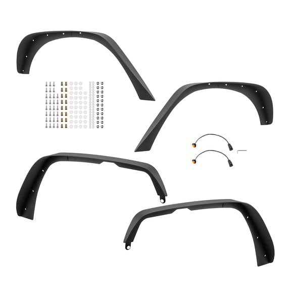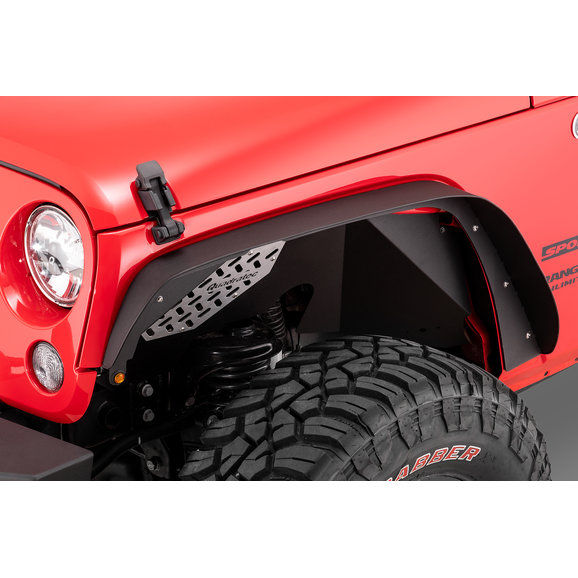 Rugged Off-Road Look: Steel Slim Flat Fender Flares increase tire-fender clearance by 2" and provide a sleek design and function.