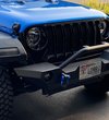 Added Features: Integrated winch plate accepts up to a 12,000 lb winch with a bull bar to protect your grille & reinforced D-ring mounts. Auxiliary Light mounting tabs on the bull bar & 4" cutouts to allow for the installation of OE style fog lights. Light mounting tabs are 10" apart from one another, and the bull bar extends out 9" from the bumper's front surface if garage space is a concern.