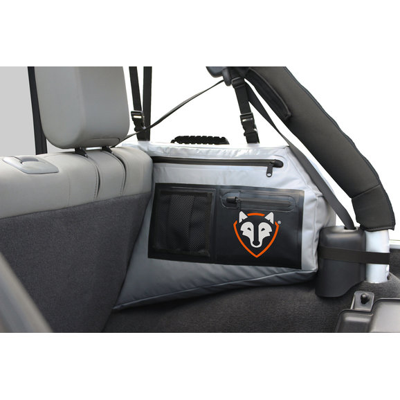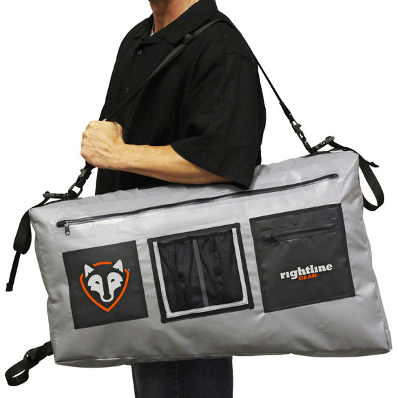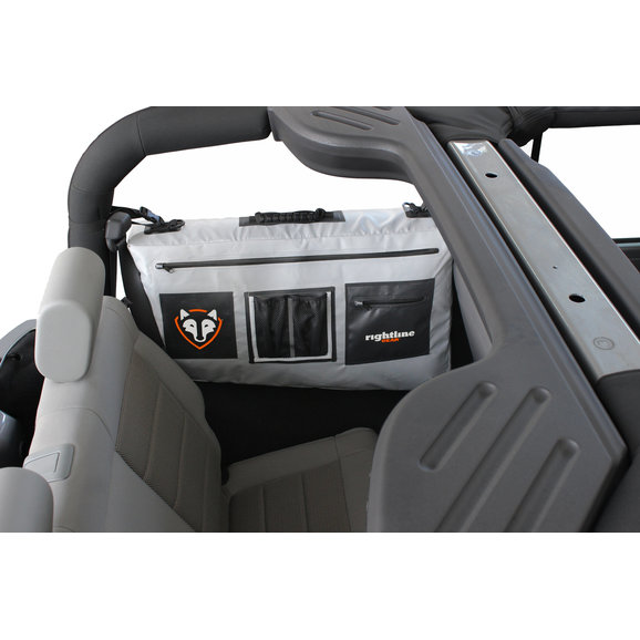 Rightline Gear storage bags are the perfect storage solution! Easily holds gloves, tree trunk protectors, recovery straps, snatch blocks, first aid kits, jumper cables, tool kits, maps, bikini tops, or air compressors for the trail. Storage bags also are great for holding jackets, extra clothing, hats, towels, blankets, sun screen, toiletry kits, or snacks.  Keep the Storage Bags strapped in place or carry them outside of your Wrangler with you.  The bags are made from tough PVC Coated Mesh that is re-enforced for strength and UV protected.