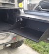 Function without Sacrificing Storage The Tailgate Table is made of 12 gauge aluminum and will handle up to 100 lbs. The convertible design folds up against the tailgate using riveted hinges so there is no loss of that much needed rear storage space.