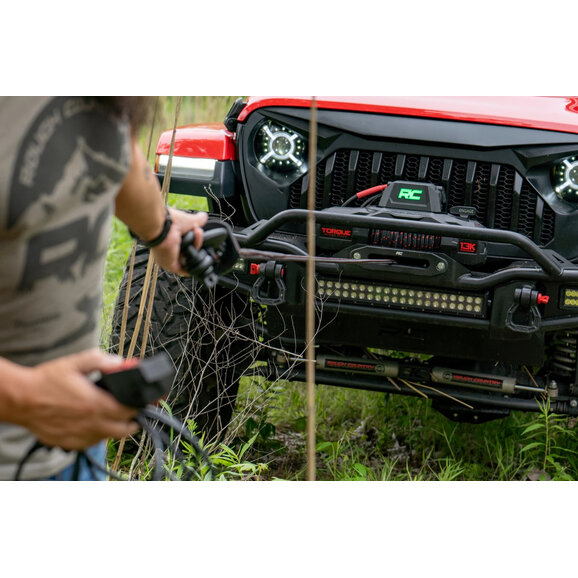 Using the Rough Country winch on your Jeep also enhances your vehicle's versatility and safety. The electronic torque limiter and illuminated control box provide precise control and monitoring, allowing you to tackle recoveries with confidence. Whether you're using the wireless remote from the comfort of your driver's seat or the wired remote for more hands-on control, the winch's powerful 7HP motor delivers consistent pulling power. This winch not only boosts your Jeep's capability but also gives you peace of mind, knowing you're equipped to handle any off-road challenge that comes your way.
