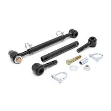 Smooth Ride: The included transfer case lowering kit is designed to optimize the rear driveshaft angle to eliminate vibration. Rough Country uses Teflon pad inserts in their double tapered leaf springs to improve the ride quality.
