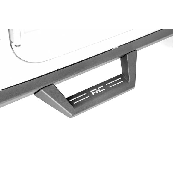 Heavy-Duty Construction: These all-steel side steps offer superior strength and protection. For corrosion resistance, Rough Country finishes their Contoured Drop Steps in a highly durable textured black powder coat.