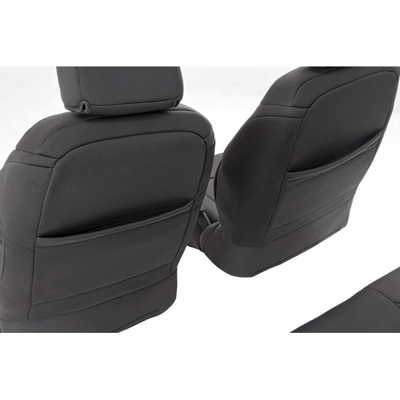 4-Layer Material: Rough Country uses premium neoprene material for their seat covers. The thick foam inner padding provides comfort and breathability, and the outer polyester shell is both water and mildew resistant.