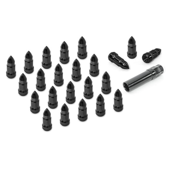 Give your Jeep a rugged look with some bullet shaped lug nuts from Rugged Ridge. These lug nuts are constructed from high strength cold forged steel so you know that they will stand up to whatever the trails throw at you. These lugs have an tapered seat so they can be used with factory & most aftermarket wheels. Their unique bullet design makes them as attractive as they are functional. Bullet Lug sets include enough to secure all 4 wheels, as well as a spare tire mount.