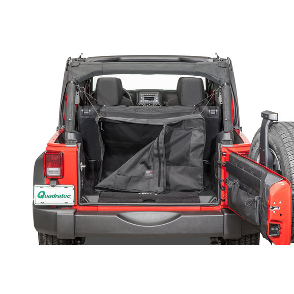 No one wants to leave their best friend at home while they are out on the trails. Now with the C4 Canine Cube you can bring them along while keeping them safe in the back of your JK so you both can enjoy the fresh air and fun. This cube carrier is constructed of heavy duty ballistic weave fabric with mesh screened walls while the plastic reinforced floor panels provide an added layer of protection to your inter carpet and trim while UV-resistant materials resist fading. The design of this cube suspends from the sports bar & anchors to the factory floor hooks making it a snap to set up or fold flat when it is not in use. This cube is an ideal complement for the C3 Rear Cargo Cover.