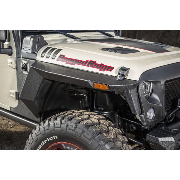 The new XHD Armor Fenders from Rugged Ridge transform your Jeep into a sleek & powerful looking trail mashing vehicle. Made of 3mm heavy gauge steel & providing high body lines along with an arched wheel opening these fenders will have everyone staring as you take on whatever the open roads can throw at you.  Adding the Inner Fender Liners will insure that you do not have to make any modifications to your 2 door JK.  This armor will work with all factory components as well as Rugged Ridge Spartan Grill, Aluminum Hood Catches and even Rubicon Rock Rails.