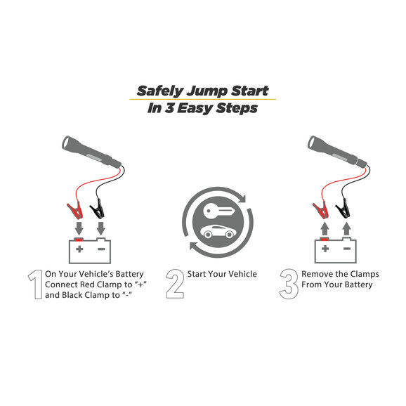 USB Charging: The integrated USB port is made for quickly charging and USB compatible device. Perfect for keeping your phone, tablet, or GPS charged while out on the trail. Powerful Flashlight: The ultra-bright 1,000 Lumen LED flashlight will assist in lighting up the engine bay while you charge the battery, or the SOS feature can help in an emergency situation. Built-In Safety: The portable jump starter features 10 safety features which included spark-protection, overvoltage, overheating, polarity, short circuit, and more to keep you and your vehicle safe.Installation Notes