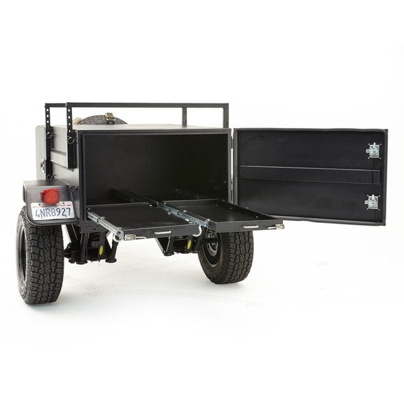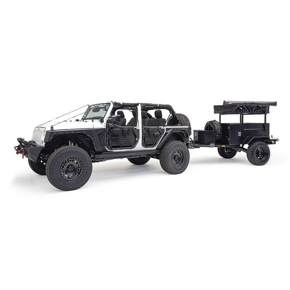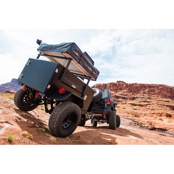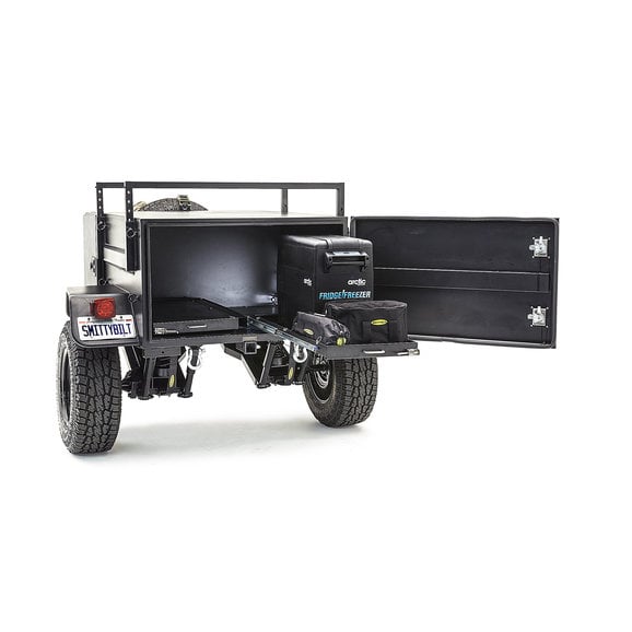 If camping or overlanding trips have totally overwhelmed your Jeep with gear, food and other stuff, then perhaps it is time for a storage upgrade. Yeah, we're talking a trailer. Now we know what you are thinking, there is no way you can afford something like that, right? But truth is — with Smittybilt’s Scout Trailer — you can. Plus, Smittybilt's designers have thought of everything to make this one of the best systems around. And something you won’t be able to live without. Things like a power coated fully-boxed galvanized steel frame with heavy duty undercoating. A massive 1763-pound payload strong enough to carry gear for even your biggest adventures. Two-inch receivers at each end to allow use of articulating hitches and hitch-mounted accessories. Three off-road jacks for hassle-free leveling. Electric axle brakes and a self-charging trailer break away system that meets all 50 state trailer brake laws. Independent trailing arm suspension featuring coil springs, dual shocks and limiting straps to provide a smooth ride. Galvanized 14-gauge powder coated tub with a Grand Canyon-sized main compartment and two easy access side cabinets – all of which lock. Removable steel fenders which can accommodate almost any size tire and aluminum tongue box perfect for deep cycle batteries and electrical systems. The Smittybilt Scout Trailer even includes rain gutter rails which allow mounting of rack systems to carry your kayaks, bicycles, or whatever toys you need on your next adventure. The best part — Smittybilt gives you all these things at a price far below similar competitors. How can you go wrong?