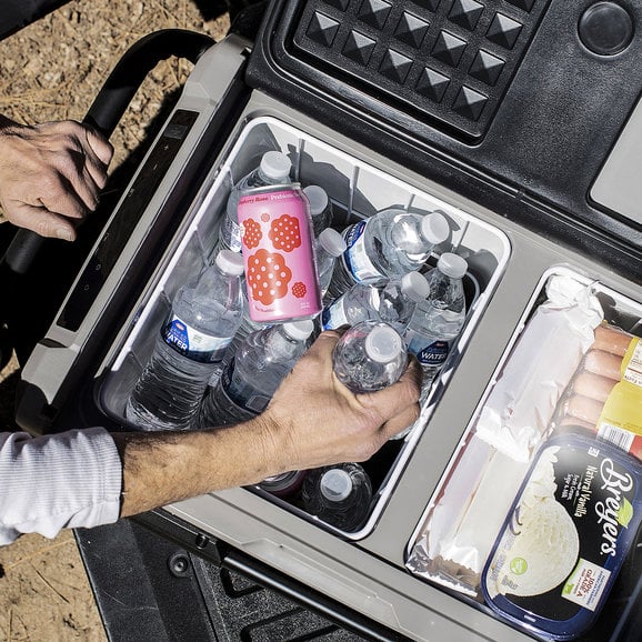 Rechargable: Battery-powered mobile fridge and freezer combination to allow you to ditch the bags of ice to keep your beverages and food cold while out on the trail.