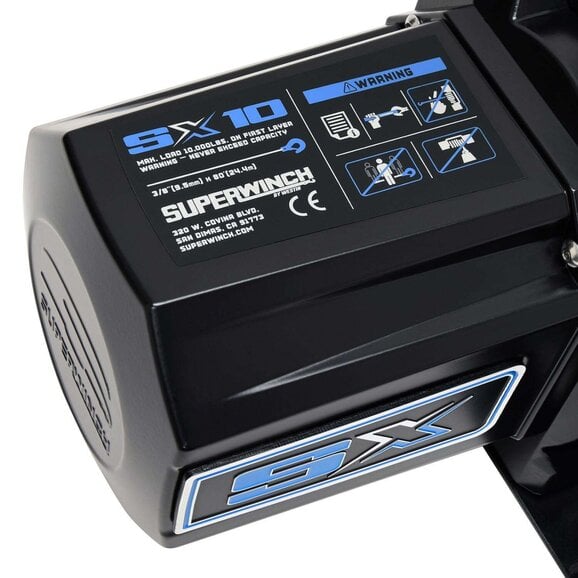 The Superwinch SX 10000SR or 12000SR Winch provides you with your choice of 10,000 lbs. or 12,000 of pulling power with the ideal combination of speed, innovation, and proven performance. These winches offer many user-friendly features such as a patented drum light, relocatable die-cast aluminum control box, 3/8" diameter synthetic rope, a 12' lighted wired remote, and a wireless handheld remote.
