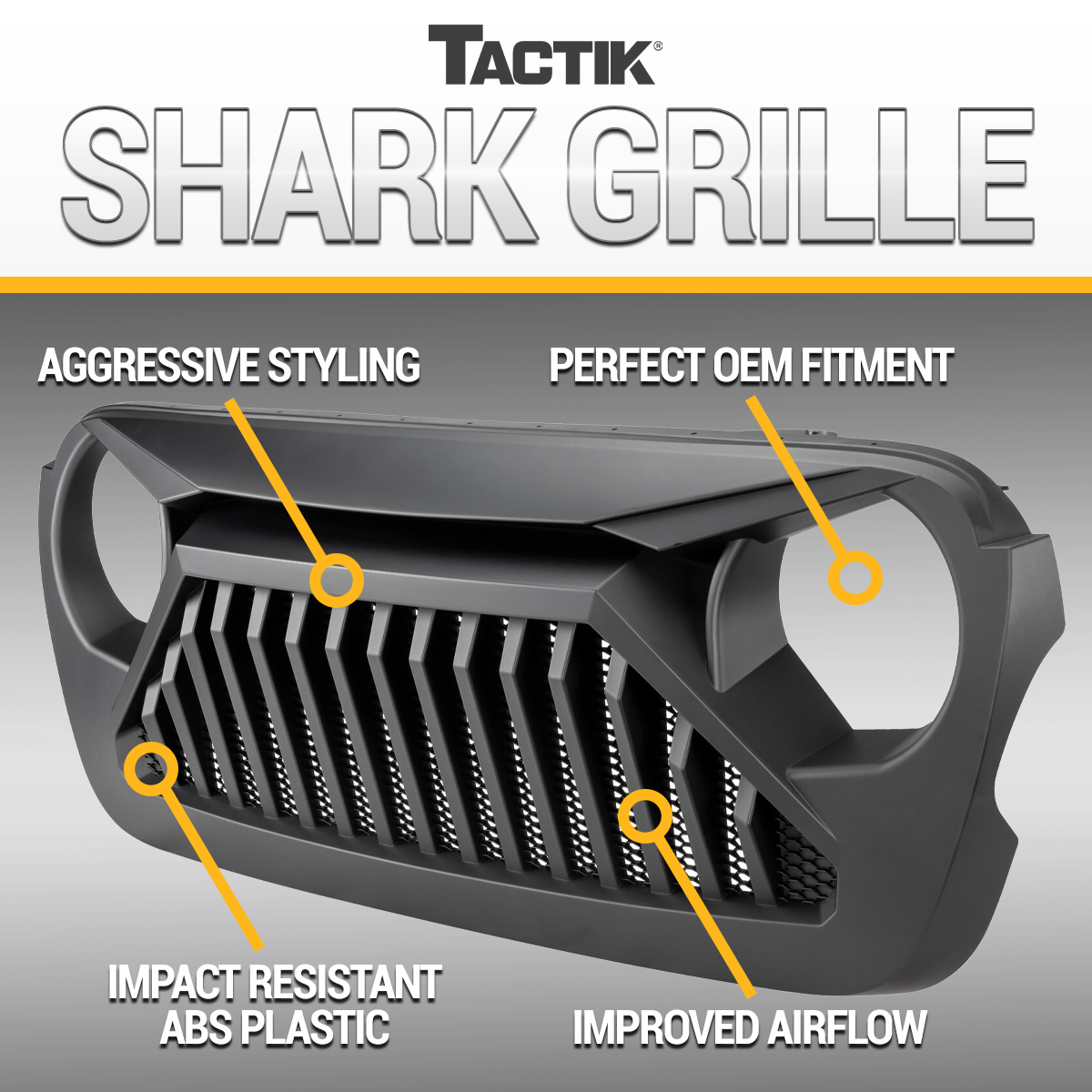 Installation is quick and hassle-free, with a direct bolt-on design that requires no cutting or modifications to your factory setup. Whether you're customizing your Jeep for a unique appearance or preparing for extreme off-road conditions, the Bull Shark Grille delivers strength, style, and durability. Its precision fit and aggressive styling make it a popular choice for JL or Gladiator JT owners looking to stand out from the crowd without compromising functionality.