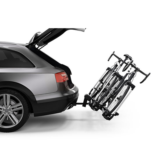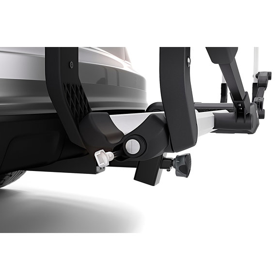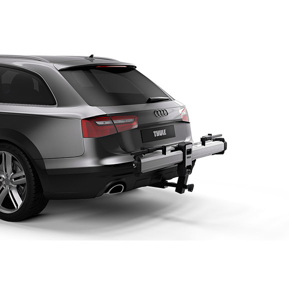 Hitting the trails, gravel, or pavement with your Jeep is fun, but if you're looking to do the same with your bike you need a carry solution. This Helium Platform Bike Rack from Thule is the perfect blend of craftsmanship, utility, quality, and style. The 23 lb (1-bike) or 43 lb (2-bike) aluminum construction means you no longer need to strain when carrying the rack from the basement or garage to your vehicle. If you have passed on other bike racks due to direct frame contact, this platform rack is ideal as your bike is held in place using your tires. Works great with tires up to 3" wide and with wheels of 26-29" diameter. The quick and easy ratcheting wheel loops make for trouble-free and fast mounting or removal of your bike(s). Arms fold down when not in use. The full rack can also tilt up or down for trunk and tailgate access or to fold out of the way. An integrated cable lock & hitch pin lock provide some peace of mind. Works with both 1.25" and 2" hitches. Max weight is 37.5 lbs per bike. The 2-bike rack allows for a 10" distance between bikes. Made in the USA!