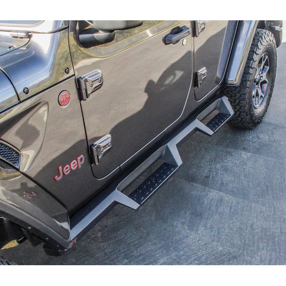 1-Piece Construction: Attaches directly onto your JL's rocker panel this step gives you more then 2" of toe to heel step area. Coated with a textured black finish to resist corrosion & to keep your steps protected from outdoor debris for years to come.