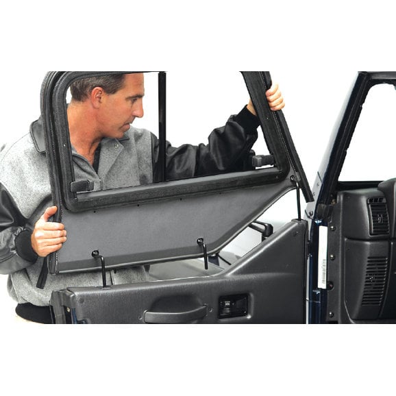 Upper Door Sliders feature a unique two-way, dual-window tracking mechanism, built into a rugged steel frame, surrounded by fabric. Each window contains a toggle latch for security and tinted tempered glass. Jeep Upper Door Sliders are sold in pairs and fit into lower steel doors. These Upper Door Sliders are a great Jeep accessory addition.To keep your Bestop® Upper Door Sliders clean and protected, we suggest using Bestop® Fabric Care for unsurpassed appearance and long life.