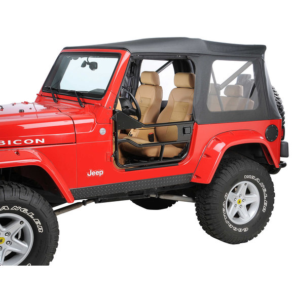 These awesome doors have a heavy-duty 1-1/4 inch tube construction. No drill application means easy on and easy off for trail days or whenever. Heavy-duty frame provides exterior protection yet ventilation. Easily accepts OEM mirror. Add the large heavy-duty storage pockets which can be