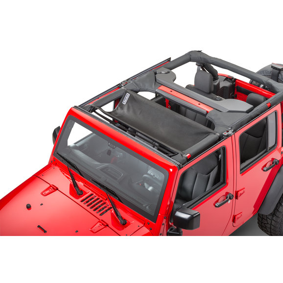 *The Jammock does not fit Wranglers with the Sky One Touch Power TopWe all love driving our Jeep Wrangler vehicles all over the place - discovering some of the best scenery around. Well why not enhance that scenery, and your relaxation, with a Jammock when you reach your destination? That's right, a 47" x 24" sharp matte black Jeep hammock which fits right between the front or rear roll bars of your Jeep and supports up to 350 lbs when installed. This isn't any old bikini top material, either. The Jammock is constructed with rugged 1000 Denier Cordura Nylon that is coated and dense for water resistance, while remaining breathable and ultra comfortable. The material also has a strong, reinforced edge that won't fray or tear during use. Supporting the Jammock are 36.5 in long straps as well as industry standard NRS buckles that are corrosion resistant and rated for 2,000 lbs each. These asymmetrically placed buckles and straps allow for extra versatility as the Jammock can also be used as overhead storage, a pet barrier, windbreaker and seat sling off the vehicle. The Jammock is carefully crafted to fit any Wrangler, but does require roll bar padding to mount. Do not use the Jammock while vehicle is in motion. Always set the parking brake before mounting Jammock. Always use care when mounting the Jammock.