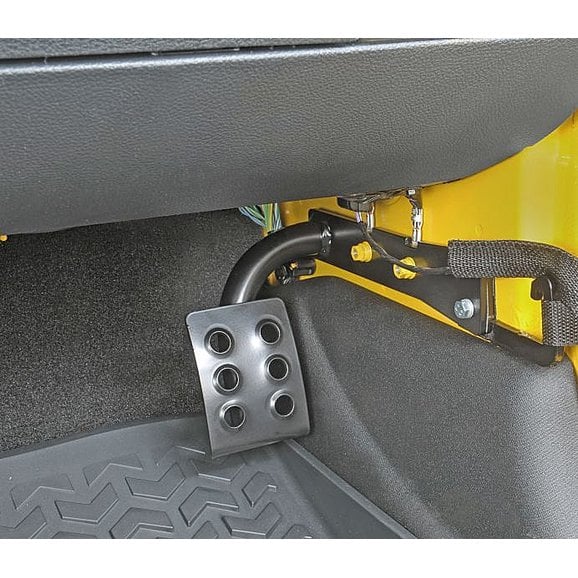 What is a Dead Pedal? This bolt-in Dead Pedal is now adjustable forward and backward for your comfort. M.O.R.E. has a new product for enhancing your comfort level while driving your Jeep. This new easy bolt-in Dead Pedal helps with leg fatigue that many of us get while driving when you do not have a place to support your left foot. The Jeep JK dead pedal bolts into existing holes (no drilling required) and comes powder coated.