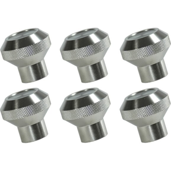 Dress up your interior and add a custom touch with these billet knobs. Billet aluminum construction with a clear coated finish. Sold as a set of 6 knobs.