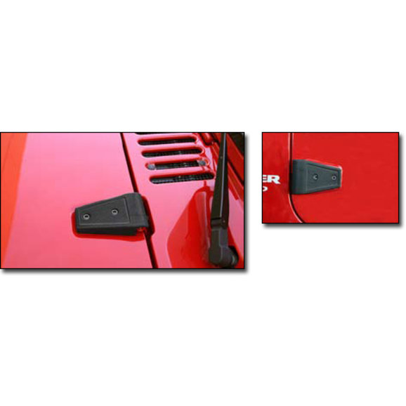 These cast stainless design Hinge Treatments are guaranteed not to rust while providing a new beefy look. Door and Hood Hinge covers feature a easy-to-install design. Replacing your existing hinges can break & crack the surrounding paint, as the hinges were painted at the factory after installation. These covers retain the stock hinge but give it a new look without harming your expensive paint. Door and Hood Hinge Treatments are available in both Textured Black and polished Stainless designs. A direct bolt on - no drilling required, fits either side. Use 4 hinge treatment pairs for 4-door models, 2 pairs for 2-door models and 1 pair for hood.