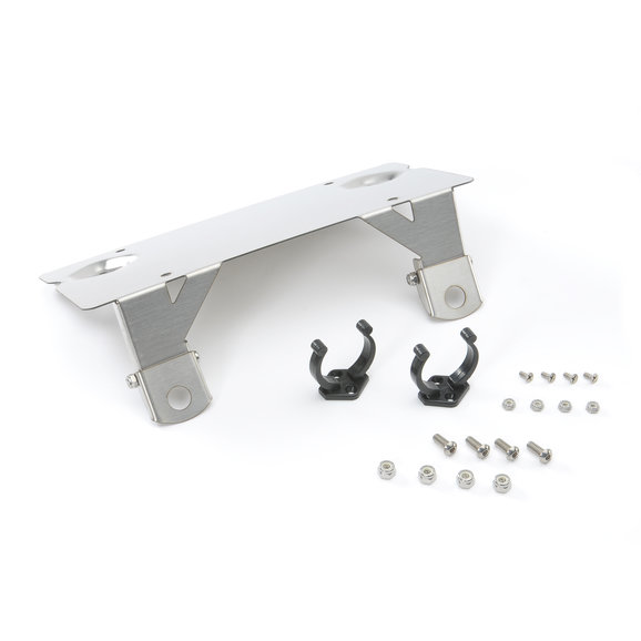 The EZ-Flip™license plate bracket easily mounts on your winch roller fairlead. Once upright, corrosion resistant stainless steel springs hold it in place. After winch use, simply lower the plate and snap the clips onto the rollers.