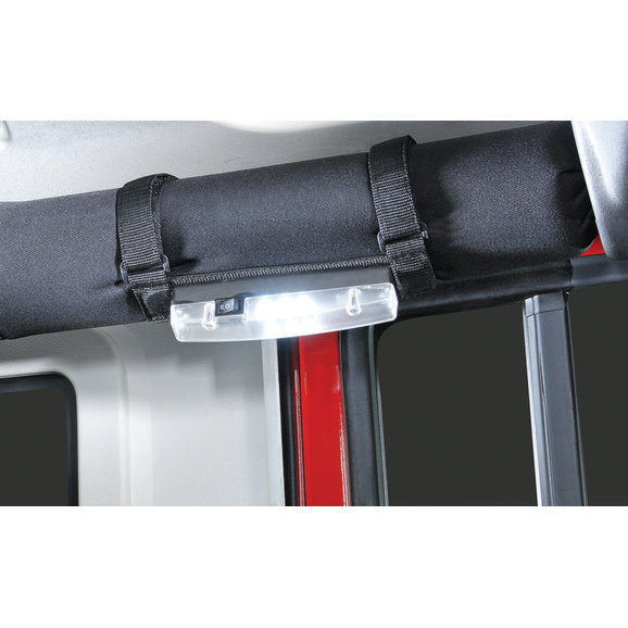 Crown Automotive's Rough Trail LED universal light kit attaches to any square or round bars up to 4in using wraparound hook and loop fasteners. Comes with long life superbright led bulbs. The light uses a quick release for easy removal and mobility. Uses three AAA batteries which are not included.