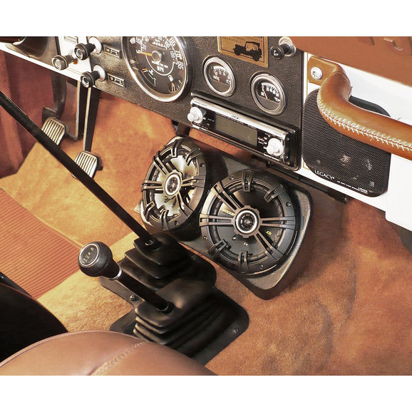 The Centra-Pod is a fantastic addition to your CJ or YJ's sound system! This unique speaker housing rests in front of both shifters and directs sound toward both the driver and passenger with Kicker 6 1/2" coaxial speakers included. Constructed of sturdy, textured plastic, the Centra-Pod will stand up to abuse for years to come and compliment your vehicle's interior with a factory appearance. The Centra-Pod installs easily, mounting to the floor with two hex-head self-tapping screws. A concealed wire lead hole located at the rear of the unit makes for a tidy installation. All hardware, poly-fill, and instructions are included.