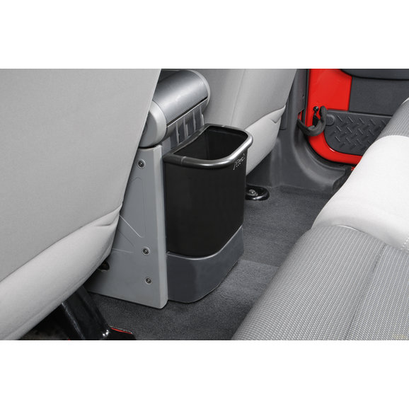 New black ABS wastebasket designed specifically for the Jeep JK. Ingenious design utilizes factory cupholders in the console for convenient placement for both the driver and passengers.