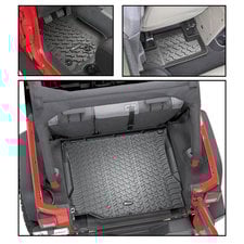 Presenting the only Floor Liners good enough to bear the Quadratec name! Our Ultimate Floor Liners are affordably priced and are cleverly designed to feature the best Limited Lifetime Warranty in the business! Our Essential® Floor Liners for Wrangler provide ultimate floor protection for active lifestyles, and are engineered with the finest materials for total protection against water, snow and mud. Get complete protection for your carpeting with our Essential Cargo Liners. Our exclusive liners feature 2" tall edges that contain big spills, messy cargo and feature a Unique tread pattern that is Exclusive to Quadratec. Engineered for a custom fit and warranted for life. Extra tough Thermoplastic Olefin construction is chemical and stain resistant and are quickly removable for cleaning. Thick and durable design provides guaranteed floor protection when hauling building materials, gardening supplies, the weekly groceries or a wet dog. This rear cargo area liner is designed to fit the Wrangler JK 2 door with the rear seat removed. For 2 Door Jeeps with the rear seat installed, please see our Recommended Items section for the 2 Door Behind the Seat Cargo Liner. The shallow textured tire tread pattern helps keep cargo from shifting