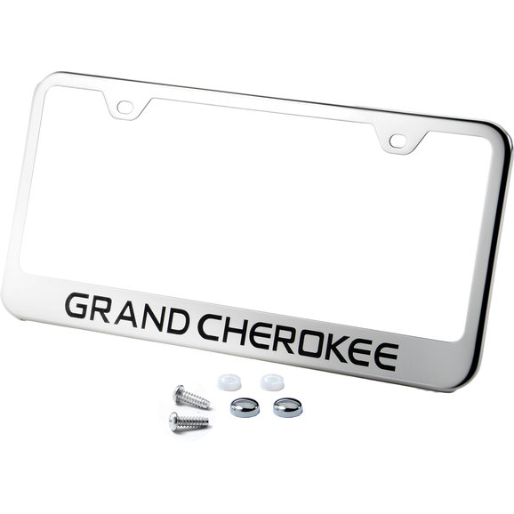 Automotive Gold Premiere Collection Etched Grand Cherokee Logo License Plate Frame in Stainless Steel Options