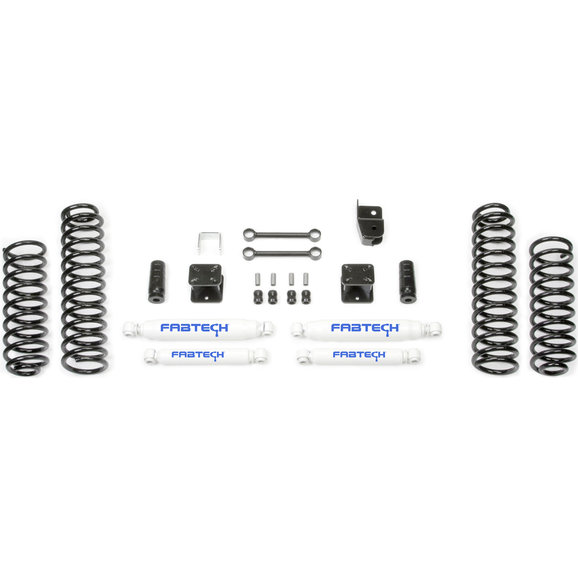 Fabtech offers a 3" Budget System for Jeep JK's that includes four American made Coil Springs that have been designed to clear 35" tall tires. The Coil Springs are specific to 2 or 4 door models and undergo a "preset" manufacturing process to insure a consistent ride height. System also includes front and rear Shocks, front Sway Bar Links, front Bump Stops, rear Bump Stop extensions, Rear Trac Bar bracket, rear Brake Hose Extension Bracket, and Emergency Brake cable brackets all in one box. This System will increase offroad capabilities and provide a good highway ride.