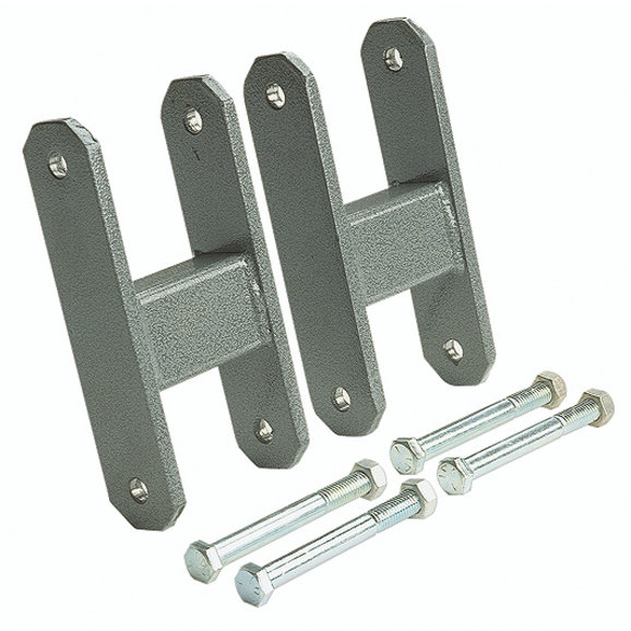 These MIG-welded, jig-built, Spring Shackles come complete with all the mounting hardware required for an easy installation. Shackle Kits lift one end of the vehicle from ½" up to 2½", depending on the application. Kits come in pairs and are available in either hammertone gray or gold zinc finishes.