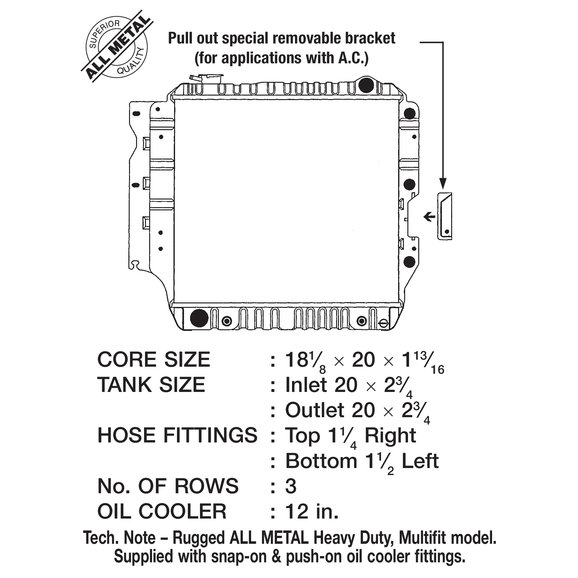 CSF 2578 Heavy Duty 3-Row All-Metal Radiator with Copper Core for 87-04 Jeep Wrangler YJ, TJ & Unlimited with 2.5L/4.0L/4.2L
