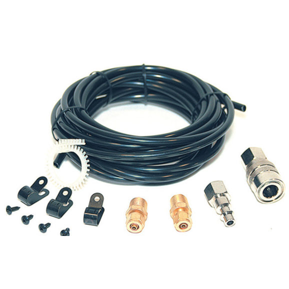 Contains 1/4" female quick connect coupler, stud, two 1/4" compression fittings, 15ft. air line tubing, three air line clips, and 4" grommet.