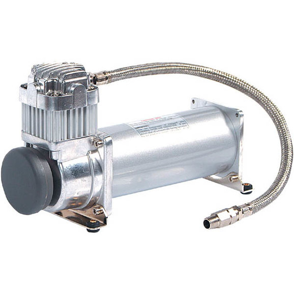 Maximum Performance Air Compressor features a 100% duty cycle and is designed to be hard mounted to your vehicle. Sealed compressor motor keeps out moisture & dirt, and is thermally protected. Comes with 18" braided stainless leader hose and mounting hardware. Airs up a 35" tire from 15 to 30 psi in less than 3 minutes. Maximum working pressure is 150 psi. Oil-less operation, air filter cartridge, and 23 amp/12 volt motor.