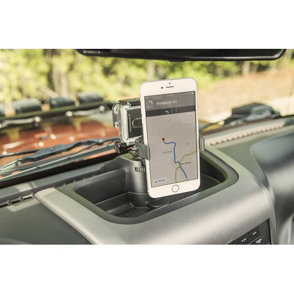 Essential JK Accessory: Allowing your smart phone to be easily viewed therefore equipping your Jeep for a safe ride. At the same time providing a camera mount to record what happens in front of your Jeep. Allowing you to easily record your adventures.