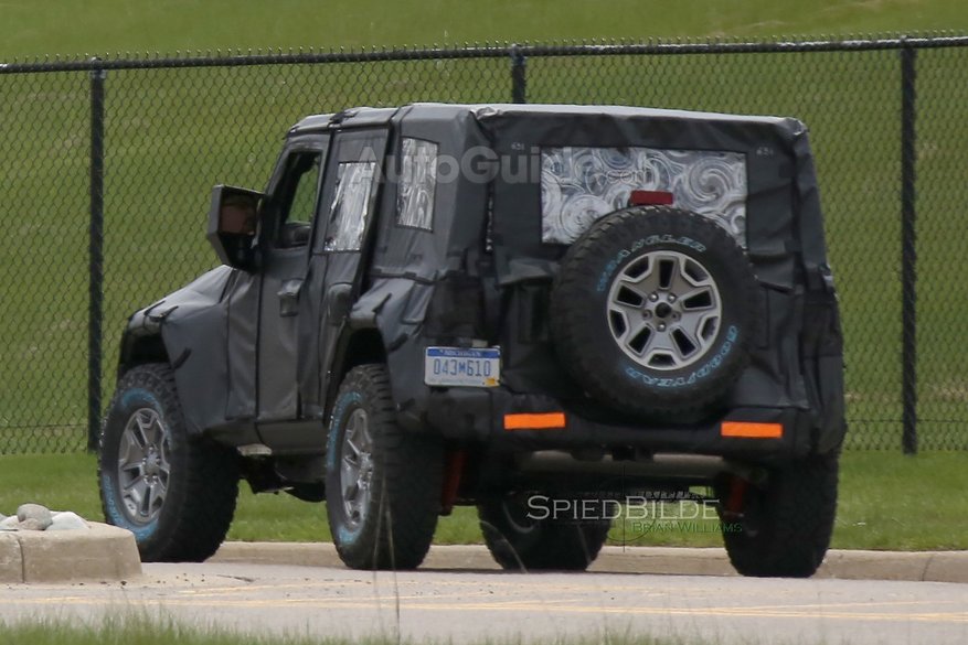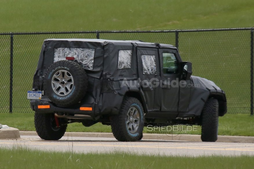 The shots, taken by photographers outside Auburn Hills, Michigan, show the heavily camouflaged Wrangler during a recent testing session and were first released by Autoguide.com.