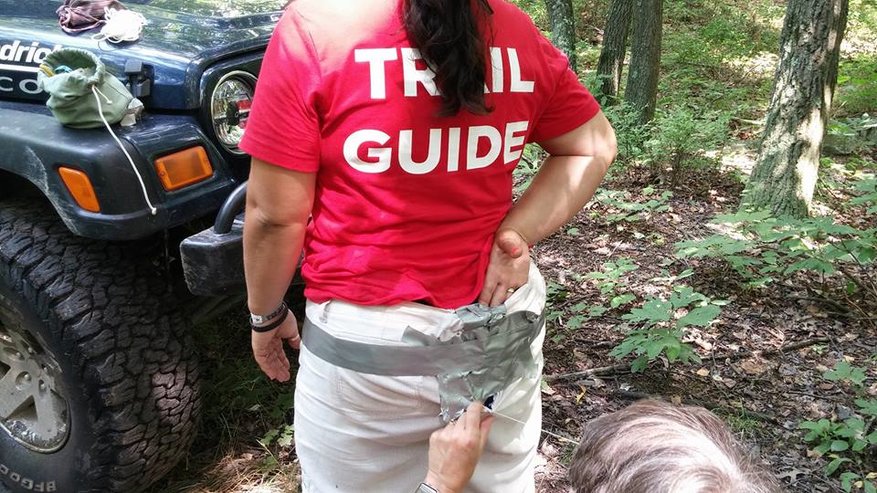 After Fern Ridge it was time for much needed nourishment, but as folks were discussing the trails and sharing stories, we had to do another small trail repair. This time though, it was a different kind of repair that did not call for bolts or tools. Rather, this one required a needle, thread and duct tape as one of the team’s trail guides found out they had ripped their pants a bit up the middle.