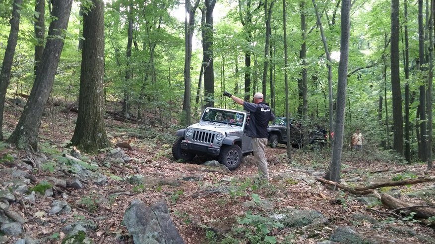 Sadly, heavy rain started to cause problems, so the trail guides gave drivers an option to either drive Zika or take a bypass. Most of the stock JKs opted for the bypass as they were growing tired from the day’s adventure. With the rain growing heavier as the afternoon progressed, we eventually got everyone who attempted Zika through and it was time to head back to the parking lot and dry off.