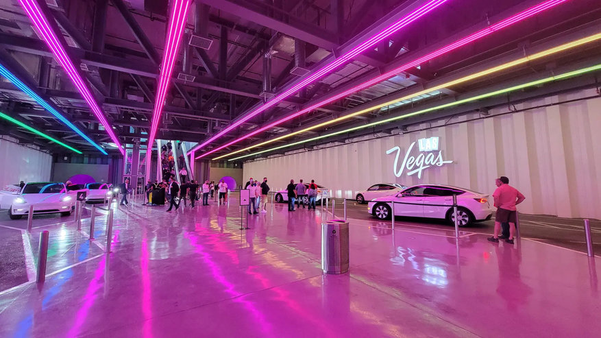 Although the tunnel’s initial plans were to have autonomous vehicles, the current system has human drivers, and ours made some small talk during the quick trip — letting us know that the tunnel had been open since April, but this was the largest show so far they would accommodate.