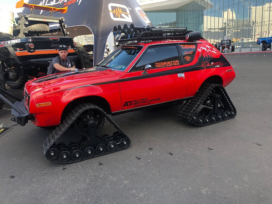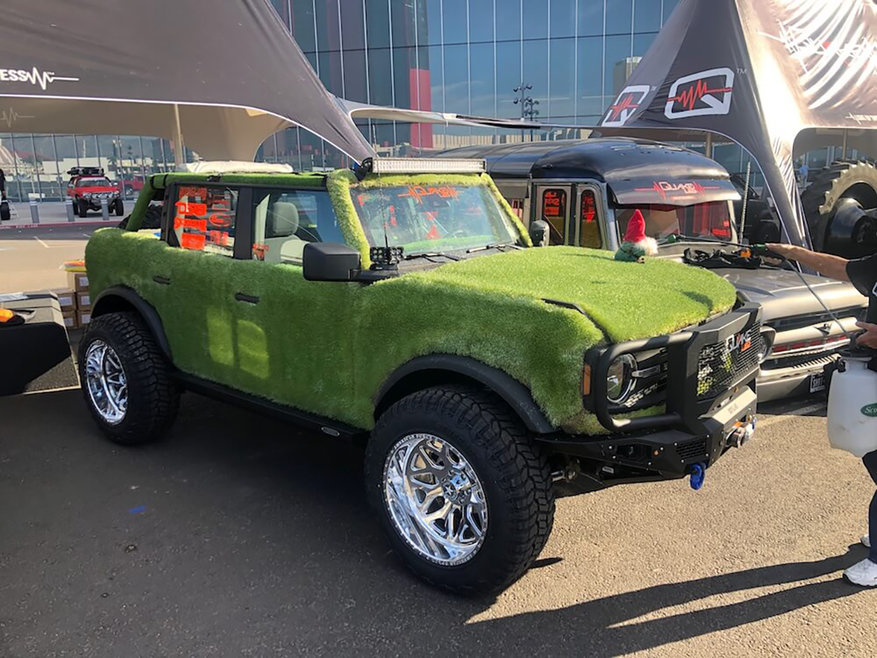 In addition to Quake’s giant-tire-sized Gladiator, the company also debuted a Chia-infused 2021 Ford Bronco, a 1978 Gremlin on tracks, a 2009 low-rider GMC Hummer and a 1985 ‘Jeeagle’ which fused a Jeep Wrangler frame and an AMC Eagle body together.