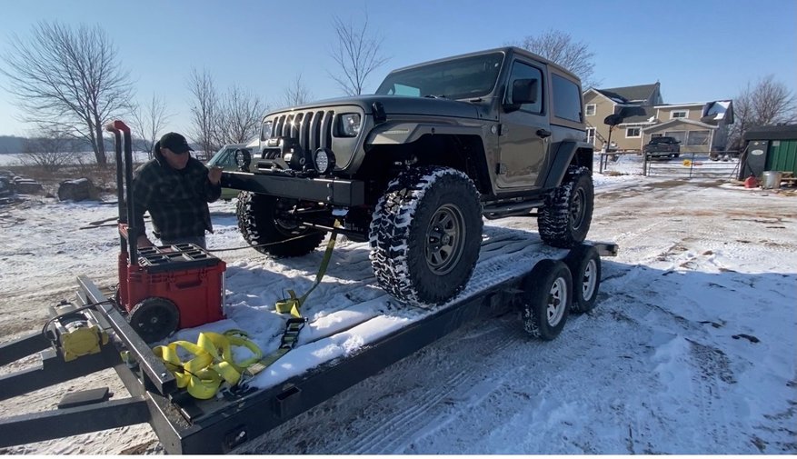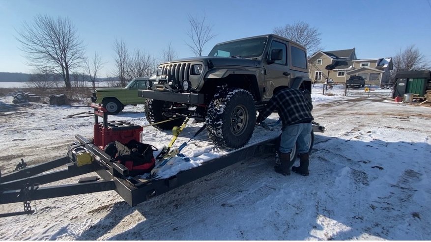 Greg Henderson, nationally-renown vehicle builder and fabricator, as well as owner of Official Use Only, is one of them this morning. He’s perfectly dressed for the Michigan cold with a bunch of layers that tops off with a red, black, charcoal and off-white flannel shirt. Heavy boots sit over faded blue jeans and he is busy loading up our custom YJL build for a long cross-country journey to Johnson Valley, California.