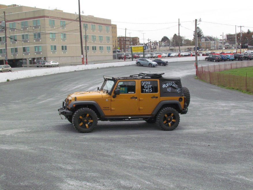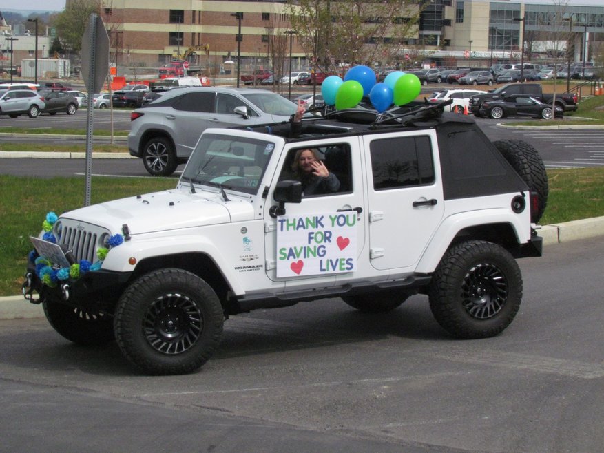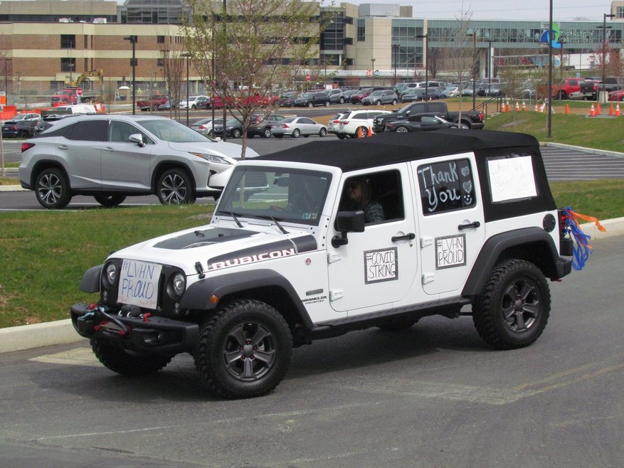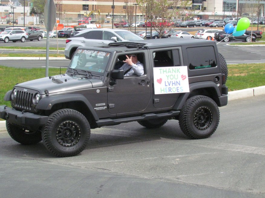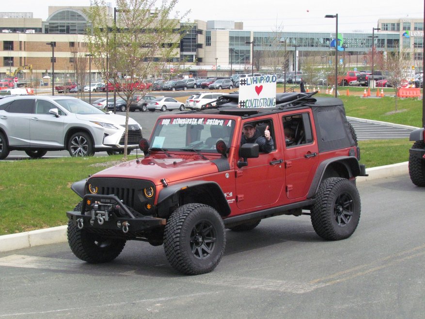 The Jeep Enthusiasts of Eastern Pennsylvania Jeep club Friday held this caravan at three different Lehigh Valley (PA) hospitals, and vehicles slowly circled each one as drivers and passengers offered an emotional tribute for doctors, nurses and other hospital staff fighting on the front lines of COVID-19.